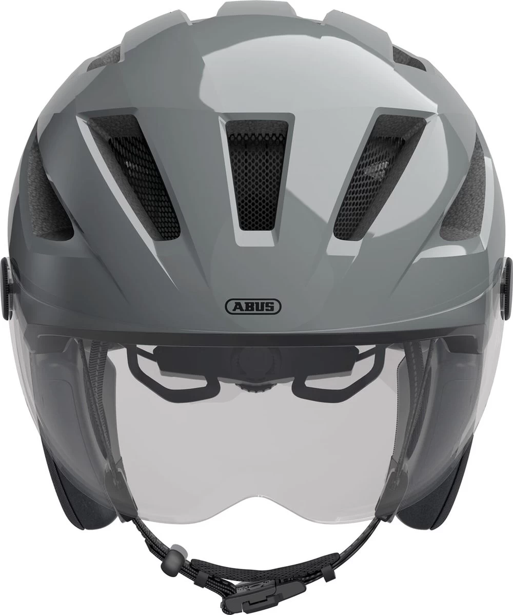 VEILIG DOOR DE STADSJUNGLE. In de ravijnen van de stad is een helm onontbeerlijk. De Pedelec 2.0 ACE is hierbij de eerste keuze voor alle urbane bikers. In het verkeer in de grote stad is een helm voor u als fietser een onontbeerlijke begeleider. Want ongevallen gebeuren snel en als u valt, beschermt de fietshelm tegen grotere schade. ABUS biedt met de Pedelec 2.0 ACE een fietshelm die voldoet aan de hoge veiligheidseisen in grote steden. Met het lage slaapgedeelte biedt de helm een bijzonder goede bescherming voor de drager. Bovendien heeft de Pedelec 2.0 ACE een ge�ntegreerde regenkap, die bij de eerste regendruppels snel over de helm kan worden getrokken. De bijzonder felle, oplaadbare lamp en het verwisselbare vizier bieden extra passieve bescherming.