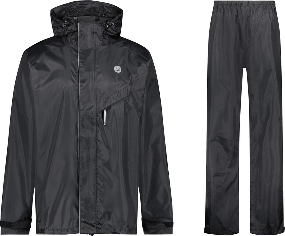 - De jas en broek hebben een geïntegreerd opbergsysteem. Ook je waardevolle eigendommen blijven mooi droog.