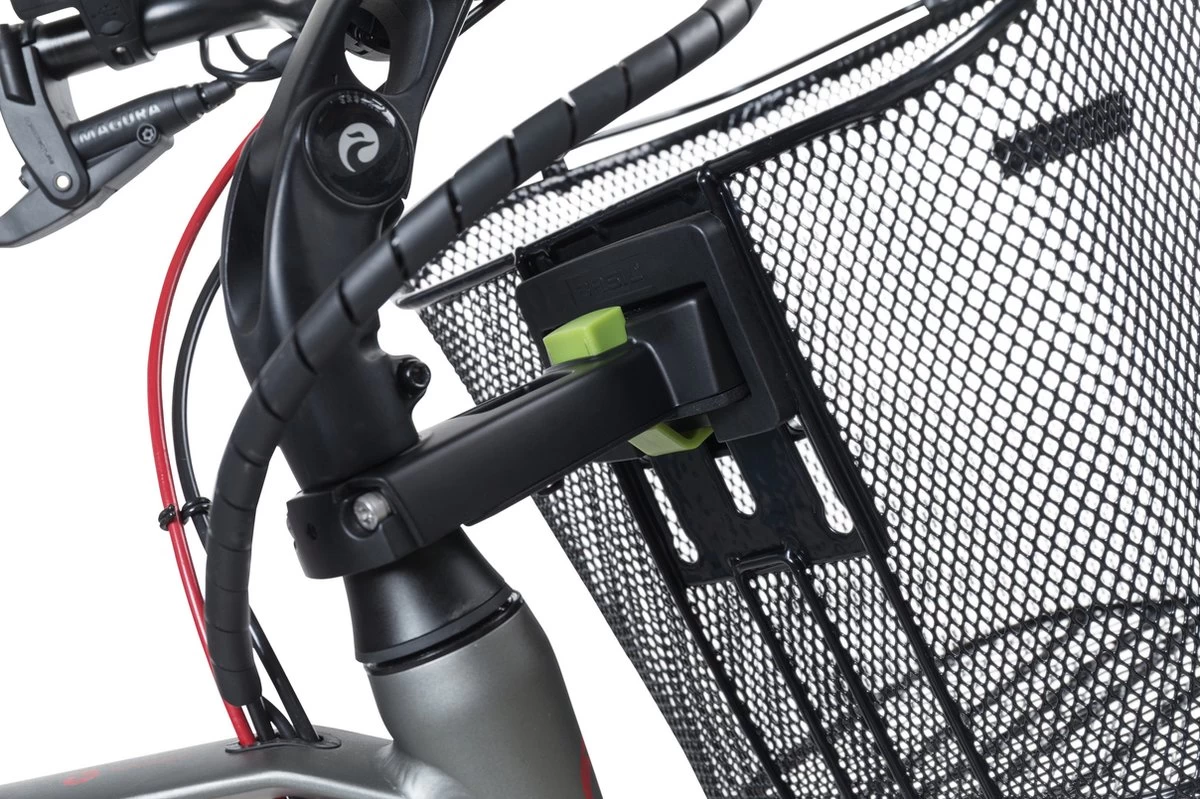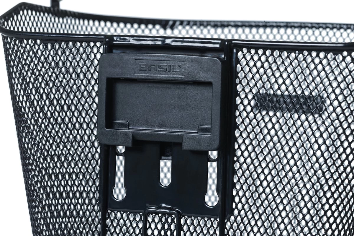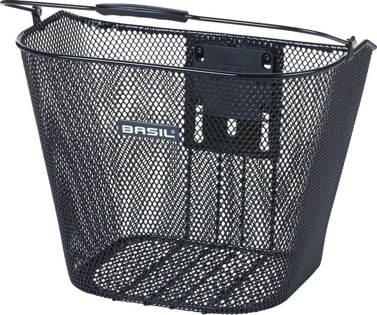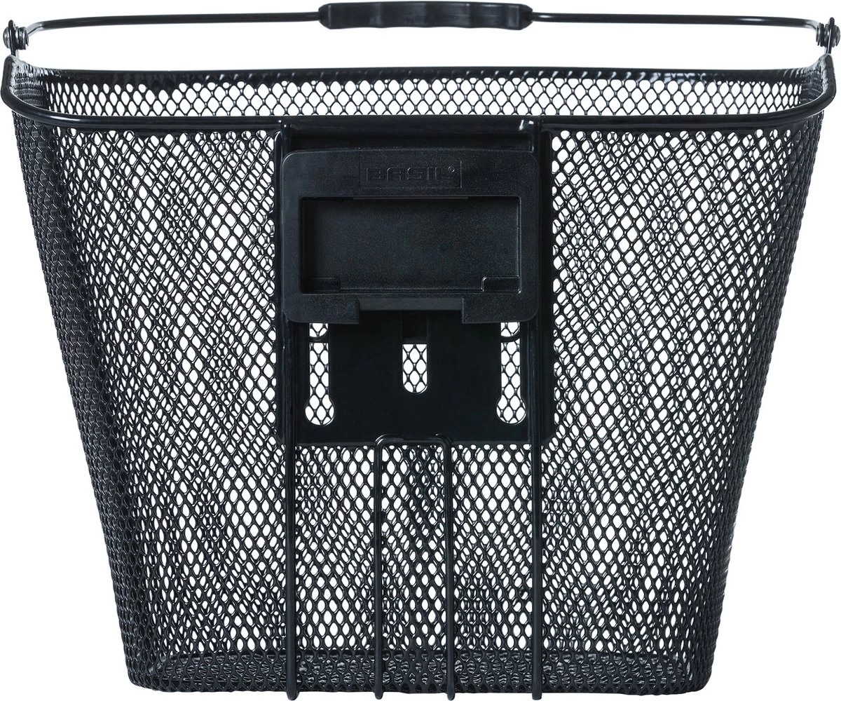 De Basil Bremen is een moderne zwarte fietsmand in een ovalen vorm voor voorop de fiets. De fijnmazige stalen fietsmand is ideaal bij het doen van een boodschap of voor het vervoeren van een handtas. De mand is verkrijgbaar inclusief Ahead-Stuurpenhouder KF (70189): een bevestigingssysteem voor aan het stuur van een dames- of herenfiets. Hiermee heb je altijd je spullen voor in het zicht. De mand is afneembaar. Je neemt hem dus makkelijk mee naar de markt of winkel. Het hengsel, met een grip van kunststof, zorgt ervoor dat je hem comfortabel kan dragen. Dit is vooral een uitkomst als je een goed gevulde mand mee terugneemt naar je fiets. De fietsmand is in hoogte verstelbaar middels de sleuven van het bevestigingssysteem. Eigenschappen Inclusief systeem Afneembare mand Inclusief kunststof handgrip
