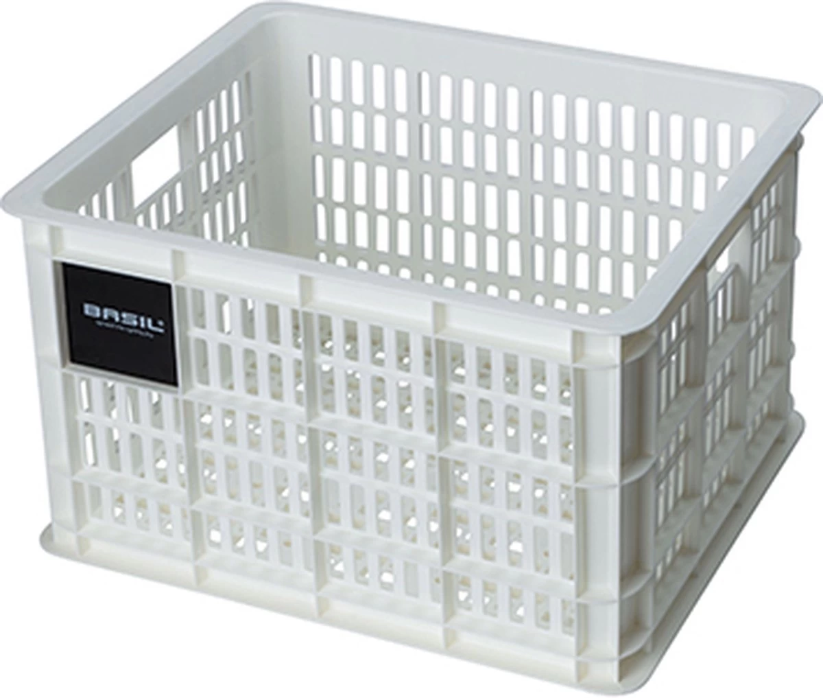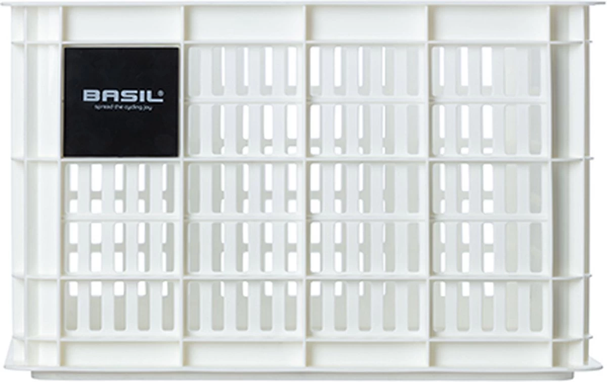 De Basil fietskrat in de maat M is een witte fietskrat voor op een dames- of herenfiets. De fietskrat is gemaakt van duurzaam materiaal en heeft een inhoud van 29,5 liter.