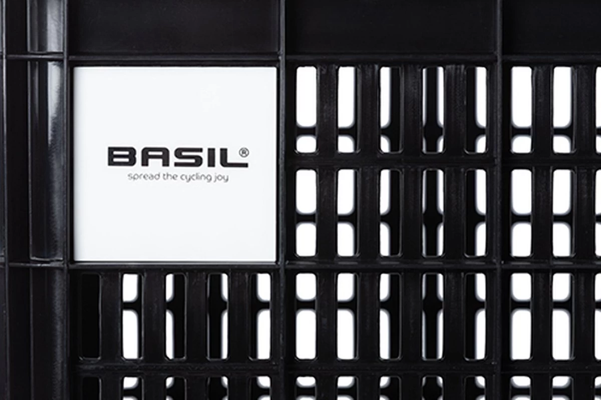 De Basil fietskrat in de maat M is een zwarte fietskrat voor op een dames- of herenfiets. De fietskrat is gemaakt van duurzaam materiaal en heeft een inhoud van 29,5 liter.