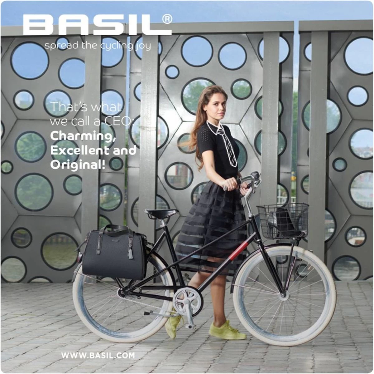 De Basil Noir Business bag is een elegante zwarte fiets,- schouder- en handtas in één. Of je nu onderweg bent naar kantoor of die lunchafspraak, deze tas maakt jouw fietsrit leuker en makkelijker. Door de cobra print en vegan lederen details ga jij stijlvol over straat, of je nu voor een elegante of business look gaat. Is er regen voorspeld? Deze Business bag is waterdicht, waardoor je spullen droog blijven. De inhoud van de tas is 17 liter en beschikt over een rolsluiting met rits en meerdere vakken. Zo is er een voorvak en ritsvak aan de binnenkant, zodat je jouw spullen lekker overzichtelijk kan opbergen. Dankzij de handhengsels en afneembare schouderhengsels, kun je de tas als schouder- maar ook als handtas gebruiken. Het Hook-On System zorgt ervoor dat de tas eenvoudig aan je bagagedrager te haken is. Dit systeem is op een nette manier weggewerkt met behulp van een afsluitbare flap. Heb je een avondje doorgewerkt en moet je in het donker naar huis? Dan zorgen de reflectiedetails en reflecterende kwastje ervoor, dat je beter zichtbaar bent. Ook is er een bevestigingsmogelijkheid voor ledverlichting. De Basil Noir Business bag is onderdeel van de Basil Noir collectie. Ben jij op zoek naar een grotere variant of bijpassende fietsaccessoires? Neem dan eens een kijkje bij de rest van deze Basil Noir Collectie. Eigenschappen: Waterdichte tas, waardoor jouw spullen lekker droog blijven. Afneembare schouderband, waardoor je een fiets-, schouder- en handtas in één hebt. Diverse vakken, aan de voorkant en binnenkant van de tas. Hook-On System waardoor de tas makkelijk aan de bagagedrager te haken is. Je bent extra zichtbaar door de reflectiedetails en reflecterende kwastje.
