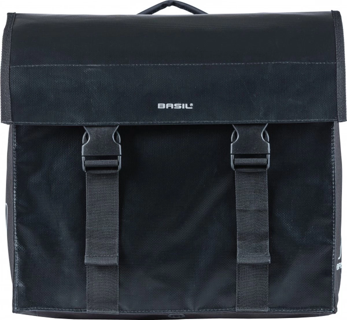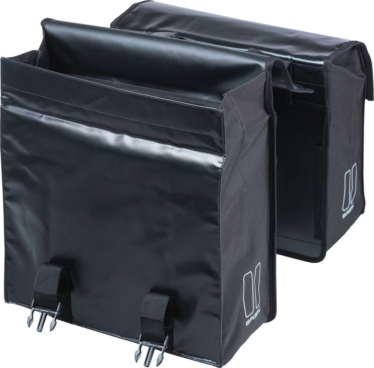 De Basil Urban load dubbele fietstas is een moderne fietstas voor de echte stadsmensen onder ons. Deze tas is ruim, georganiseerd, flexibel en heeft een strakke uitstraling. Door het waterafstotende tarpaulin kan de tas wel tegen een regenbuitje. Ook de vouwsluiting is waterkerend en voorkomt inregenen. Weer of geen weer, jij stapt op de fiets, of het nu naar kantoor, de supermarkt of de sportschool is!