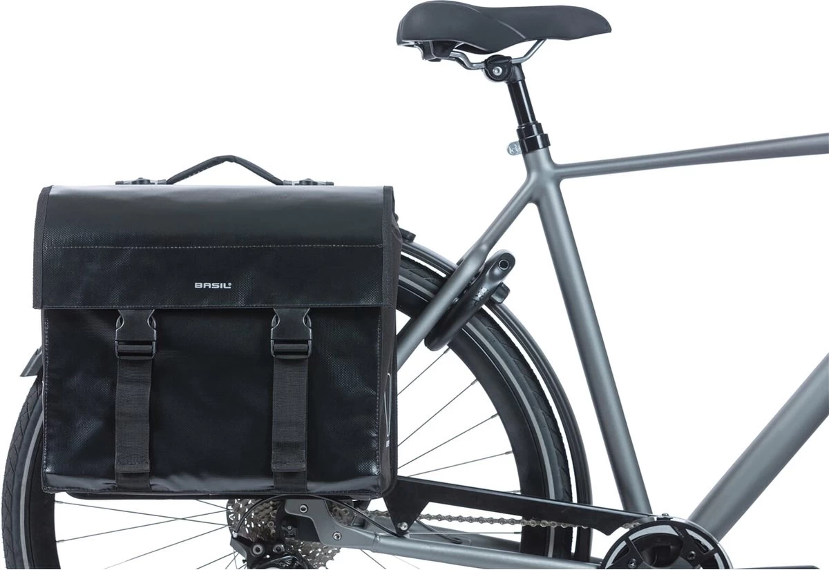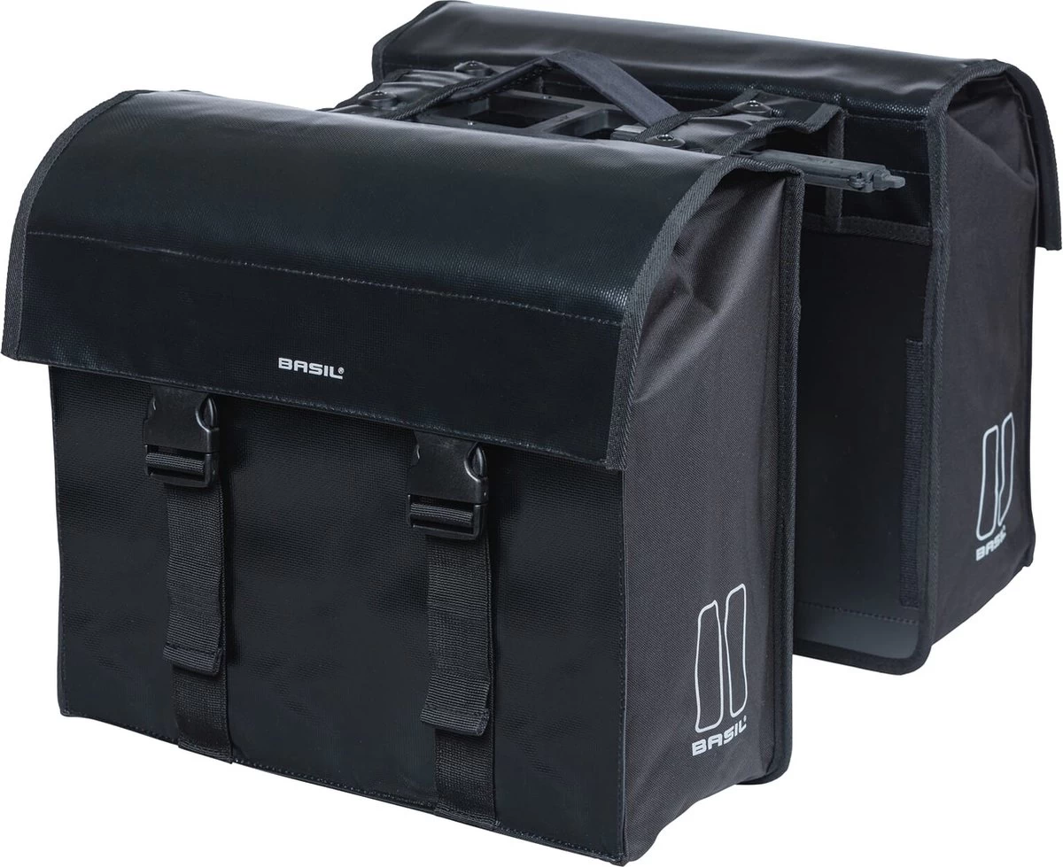 De Basil Urban Load is een regenbestendige dubbele fietstas voor achterop de fiets met een ruime inhoud tot 53 liter, een voorgemonteerde MIK-plaat en reflectiedetails.