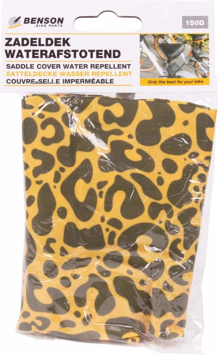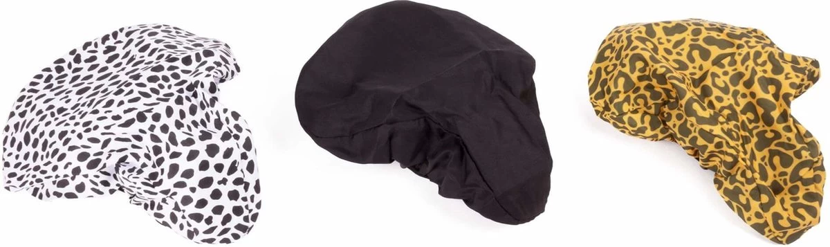 Een waterafstotende zadelhoes van stevig materiaal, met een elastische band en past op bijna elk zadel. Verkrijgbaar in 3 kleuren zwart, leopard en stippen.