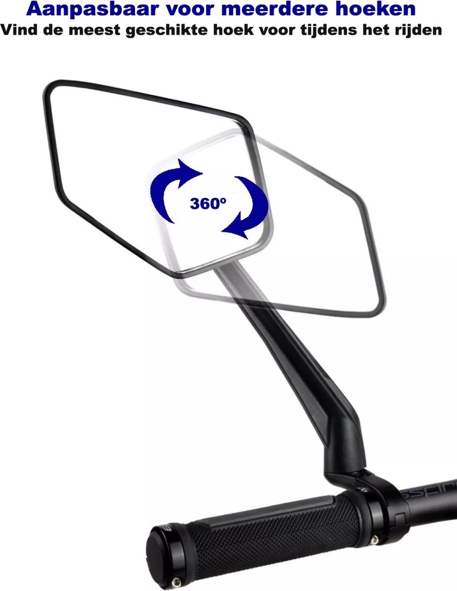 Het gezichtsveld kan makkelijk worden aangepast door de mogelijkheid om de fietsspiegels 360 graden te draaien. Dit brengt een extra stukje veiligheid met zich mee. Zeker wanneer er op een e-bike wordt gereden, deze gaan namelijk een stuk harder dan een normale fiets. Zo is het belangrijk dat de omgeving goed in de gaten kan worden gehouden.