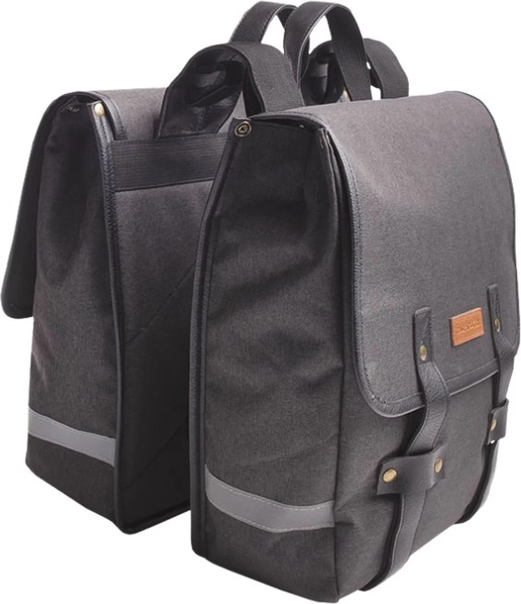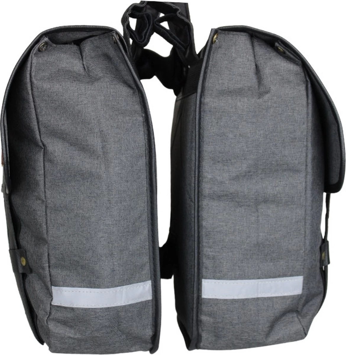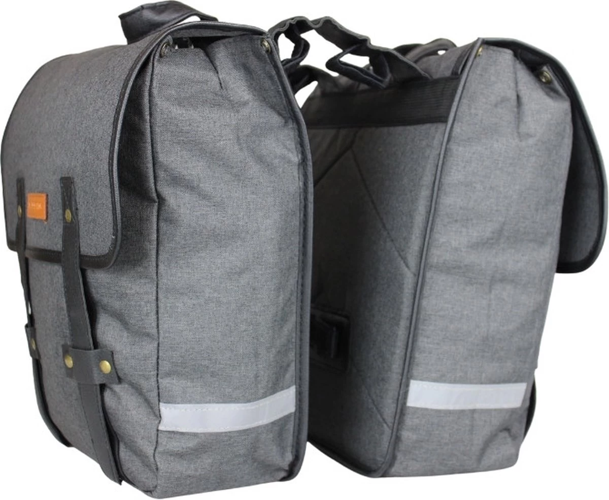 De fietstas is gemaakt van zeer stevig polyester en is tevens waterdicht. Zo worden de boodschappen in de tas niet nat. De dubbele fietstas heeft een mooie afwerking en details. Overal is aan gedacht, de handvaten die bovenop de fietstas zitten, de reflectoren en sleutelhanger, voor bijvoorbeeld sleutels of kleine portemonnee. Zeer handig zo hoef je tijdens het boodschappen niet meer te zoeken naar je sleutels of kleine portemonnee.