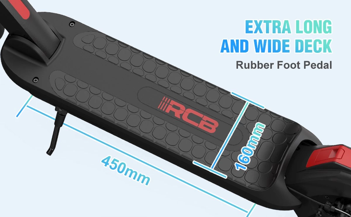 Bij het bekijken van het uiterlijk van de R10X valt op dat de basis van deze scooter hoger is dan die van andere gewone steps, waardoor de step vrij kan bewegen op oppervlaktes met kleine plassen zonder vies te worden. Het voetpedaal is ook ruim en ziet er stevig uit, met een afmeting van 160 mm *450 mm.