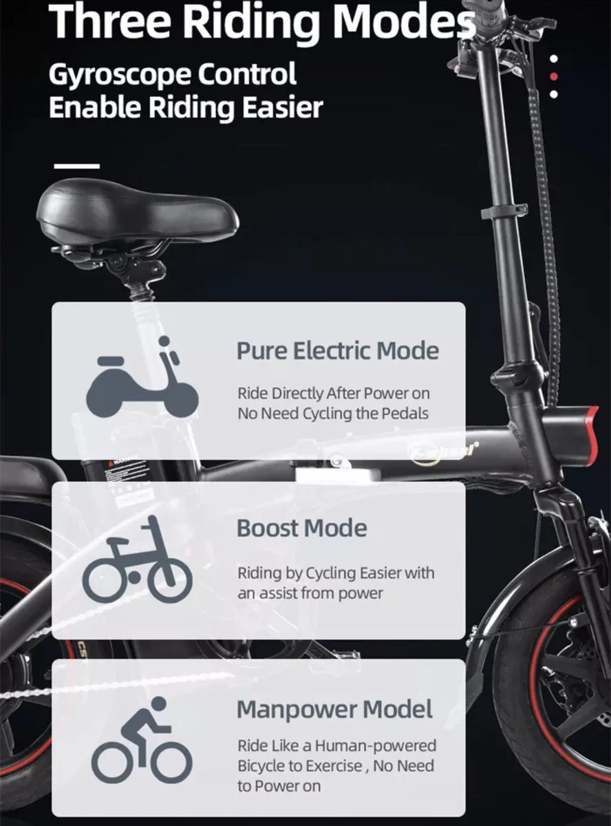 De DYU A5 eBike is gebouwd op een groter ultralicht frame van aluminiumlegering met een draagvermogen van 120 kg en een 3-traps ultracompacte vouwmogelijkheid. De A5 is uitgerust met een handige verwijderbare lithiumbatterij voor eenvoudig snel opladen.