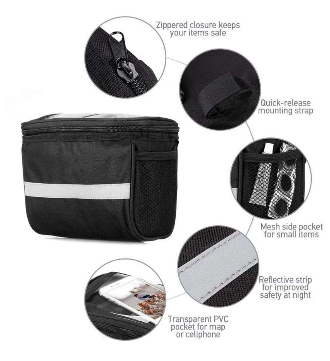 Fietstas Stuur Stuurtas Voor Fiets Met Smartphone- Of Kaarthouder – Zwart