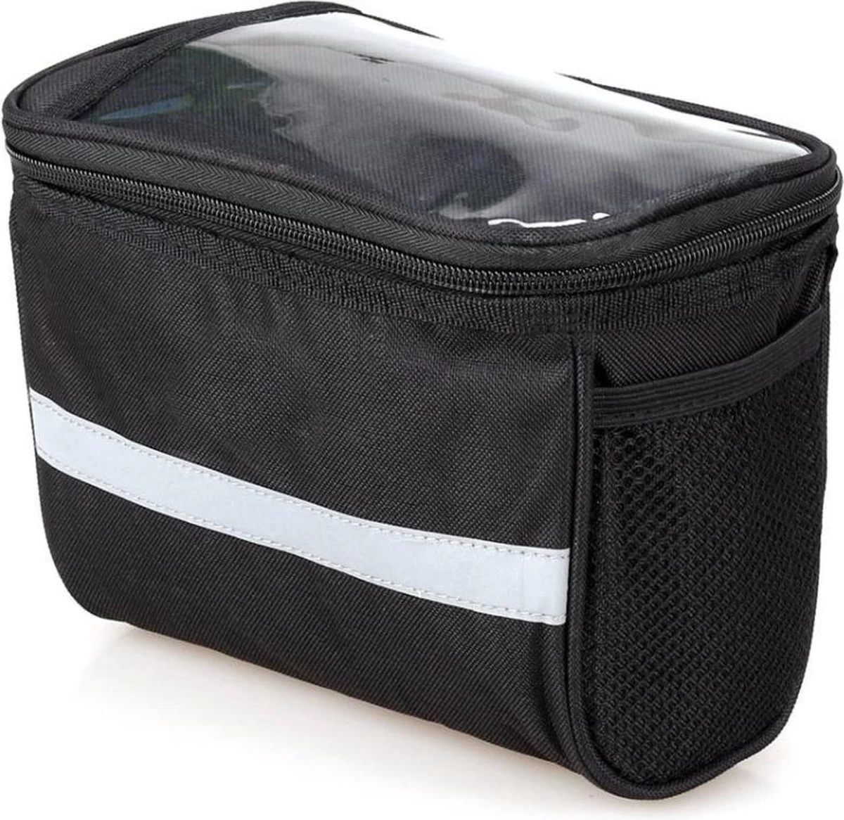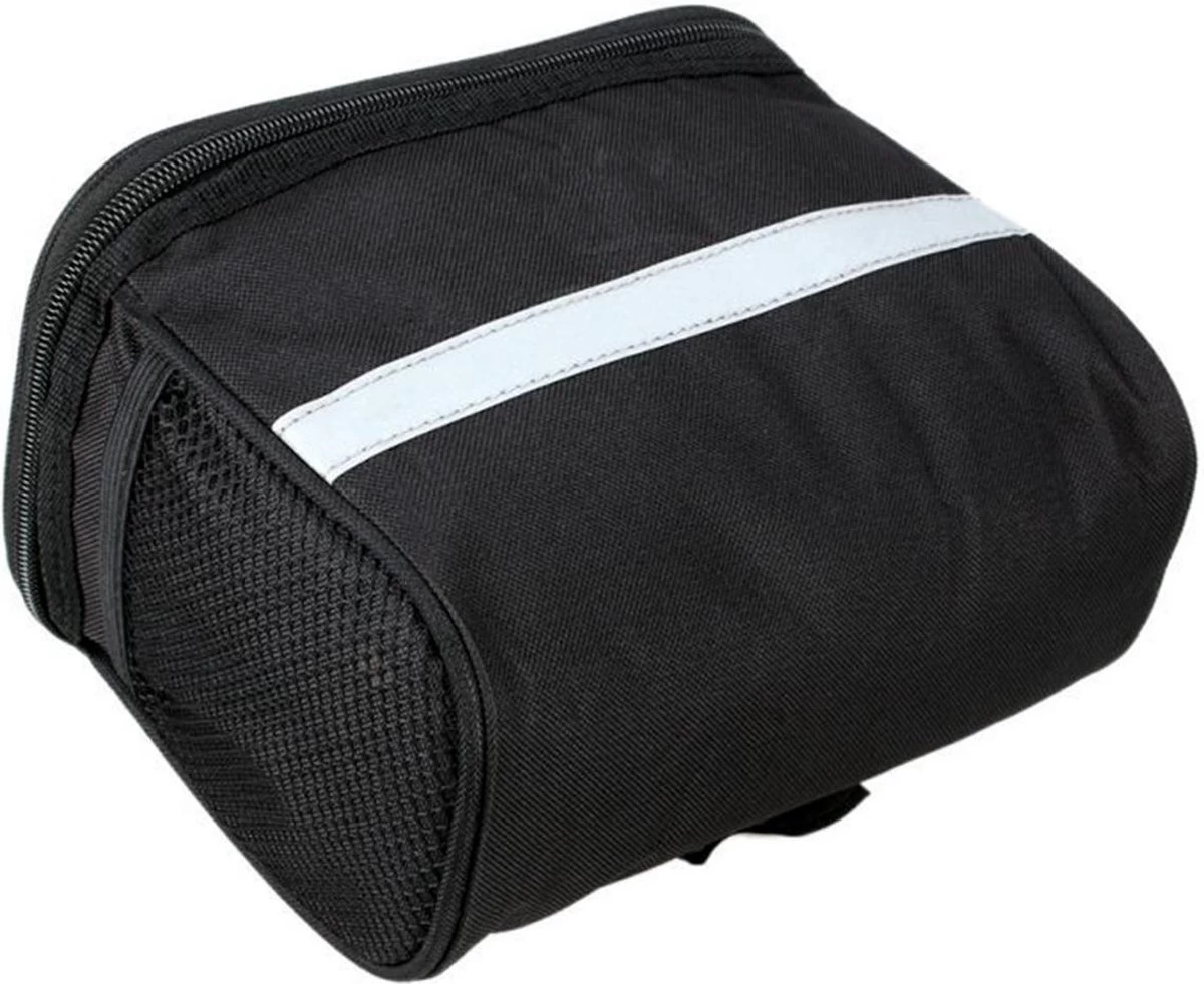 Met deze handige fietstas heb je al je spulletjes dicht bij de hand. De bovenkant is voorzien van een transparant insteekvak, waarin je een smartphone kan plaatsen (met bijvoorbeeld je navigatie) of een fietskaart. Aan de beide zijkanten van de fietstas zit een zakje van mesh stof. Heel handig voor kleine spulletjes. De inhoud van de fietstas is 2,7 liter. De bevestiging is eenvoudig met gespen.