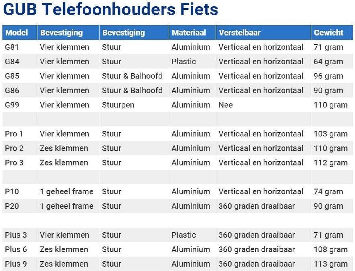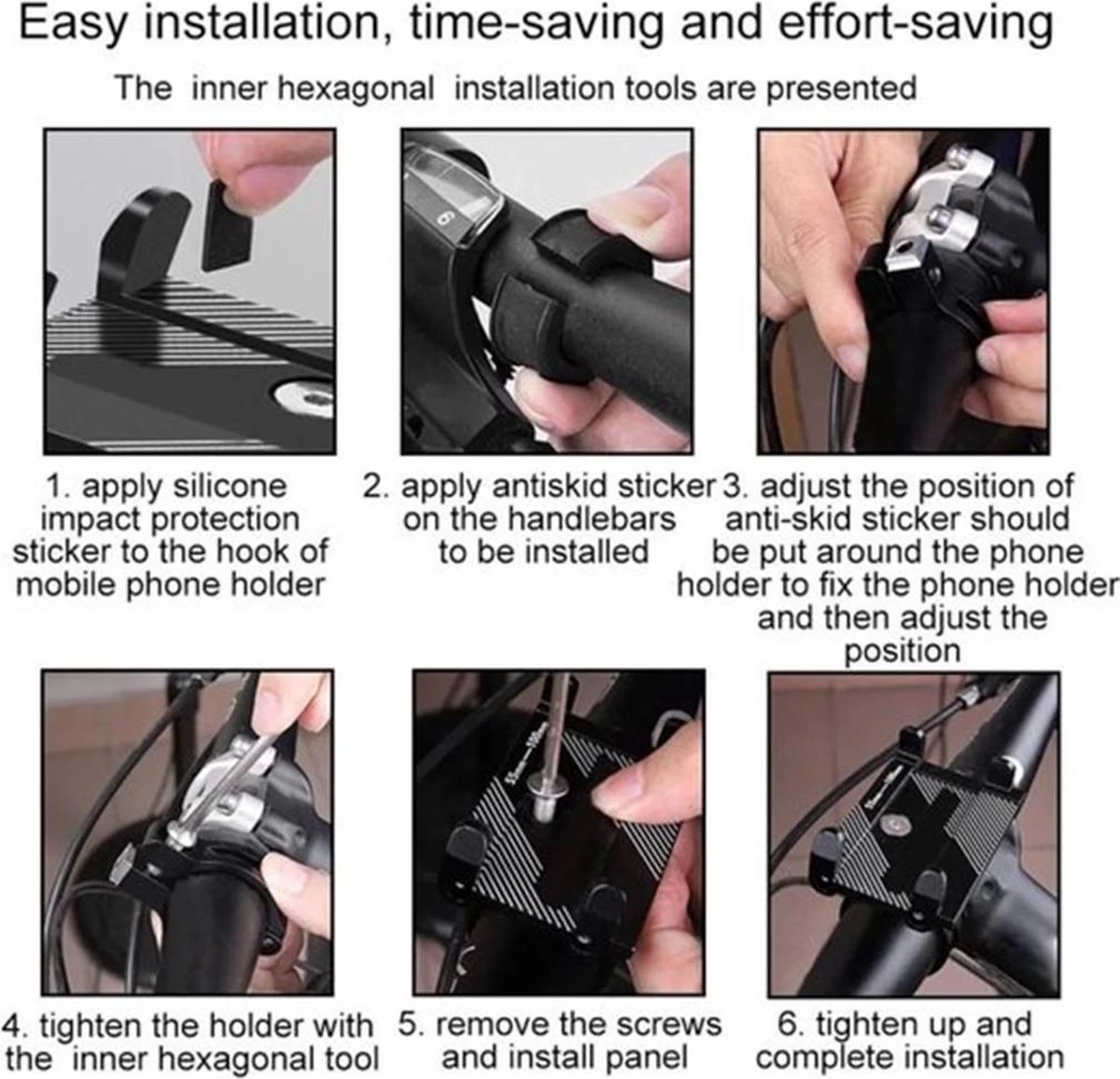 De aluminium houder heeft vier klemmen waarmee de telefoon wordt vastgezet. Draai de grijze draaiknop aan de zijkant aan zodat uw telefoon goed strak zit. Kussentjes om schade aan uw telefoon te voorkomen worden bijgeleverd. Deze fietshouder is universeel, waardoor vrijwel alle smartphones met de houder te gebruiken zijn. Elke smartphone tussen de 5 en 10 centimeter breed past in de houder, ook als deze in een hoesje zit. Omdat de aluminium klemmen dik en zeer sterk zijn is deze houder ideaal geschikt voor het gebruik op een mountainbike.