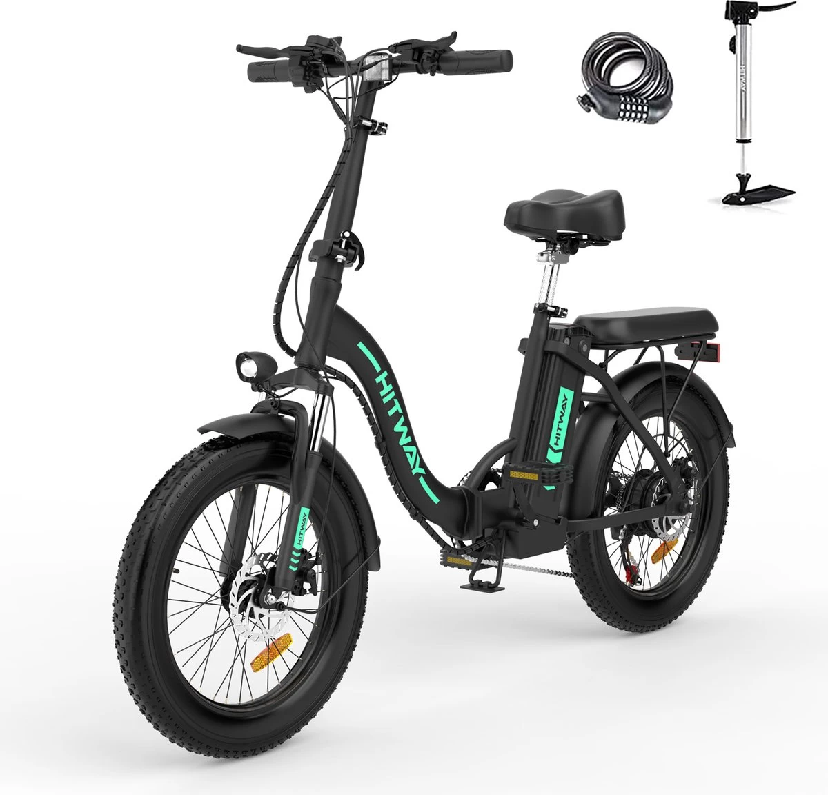 GEAVANCEERD ONTWERP: De Hitway-fiets heeft een body van aluminiumlegering, hoge sterkte en een nettogewicht van slechts 26,6 kg. Het opvouwbare ontwerp maakt de fiets gemakkelijk mee te nemen en ruimtebesparend. Het holle zadelontwerp is niet alleen comfortabel, maar voorkomt ook dat water zich ophoopt. De fiets is uitgerust met een gemakkelijk af te lezen LCD-scherm (de batterij, kilometerstand, snelheid, foutcodes enz.), evenals een koplamp en reflectoren om u te beschermen.