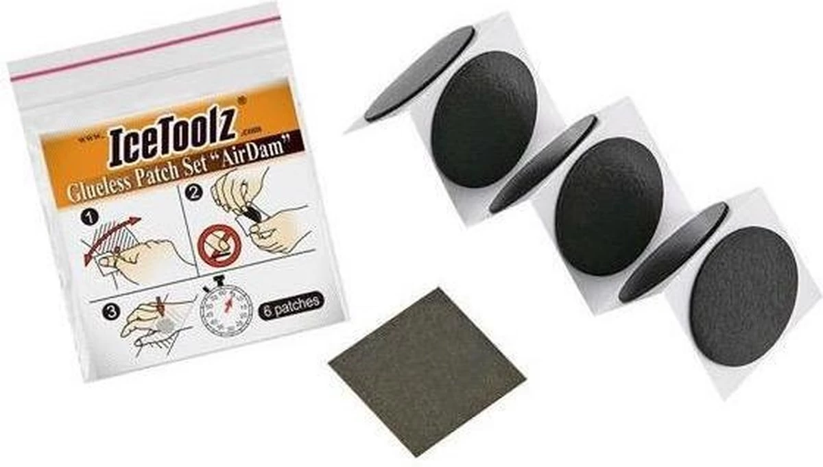 Superhandige bandenplakkers van IceToolz. Voor deze zelfklevende plakkers heb je geen lijm nodig. Ideaal!