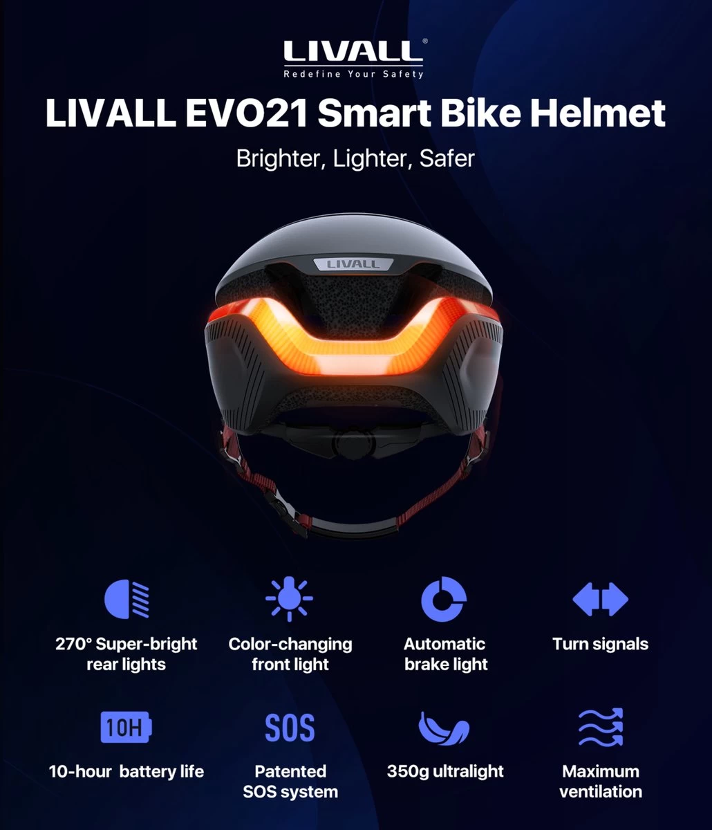 Met een marathonbestendig ventilatiesysteem en LIVALL-veiligheidstechnologieën, waaronder onze Smart LED-verlichting, valdetectie en SOS-systeem, is de EVO 21 een vederlicht op je hoofd, maar een zwaargewicht op het gebied van veiligheid. Een alleskunner die niemand onverschillig laat, zowel in het woon-werkverkeer in de stad of als de eerste die het doel overschrijdt bij sportevenementen.