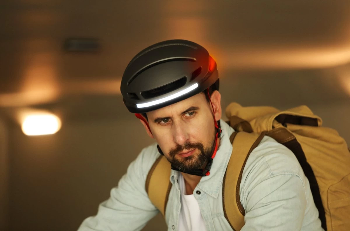 De helm is voorzien van een versnellingsmeter die de zwaartekracht gebruikt om de vertraging van het voertuig te detecteren, waarbij de remlichten gedurende 8 seconden worden geactiveerd, waardoor voertuigen en voetgangers in de buurt worden gewaarschuwd.