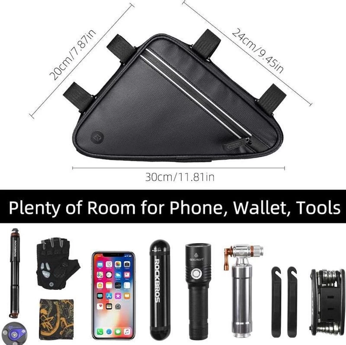 Stevige en Luxe Professionele Driehoek Waterbestendige Fiets frametas voor onder het fietsframe. Handige Driehoekige Fiets frametas voor Racefiets, Koersfiets, Fiets, Mountainbike, MTB fietsen of voor je normale stadsfiets.