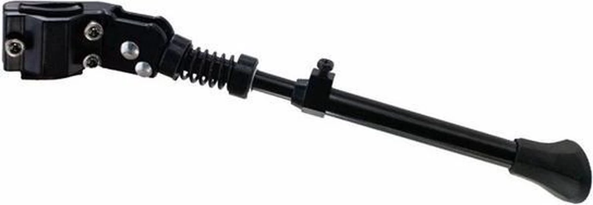 Verstelbare sport fietsstandaard/achter standaard. De zwarte fietsstandaard is geschikt voor fietsen van 24 tot 29 inch en heeft een rubber voet. Verstelbare lengte: 21-32 cm. Materiaal: aluminium.