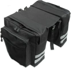 De Dubbele Fietstas bestaat uit twee ruime fietstassen van 31,5 cm bij 16 cm. Genoeg ruimte dus voor een laptoptas, boodschappen of praktische zaken zoals een kleine fietspomp voor onderweg. Ook hebben beide tassen nog een kleiner vak, zo hou je ze lekker opgeruimd!