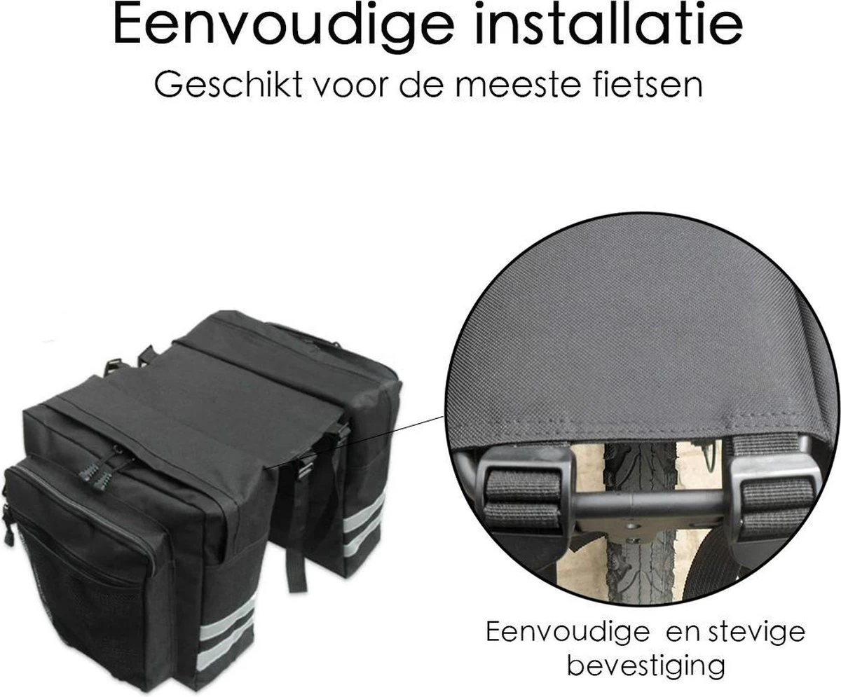 De Dubbele Fietstas is verstelbaar. Heeft jouw fiets een bagagedrager? Dan is de kans groot dat deze fietstassen geschikt zijn voor jouw fiets. Wil je het zeker weten? Meet dan even de breedte van je bagagedrager op. De fietstassen passen op bagagedragers van maximaal 31,5 cm breed.