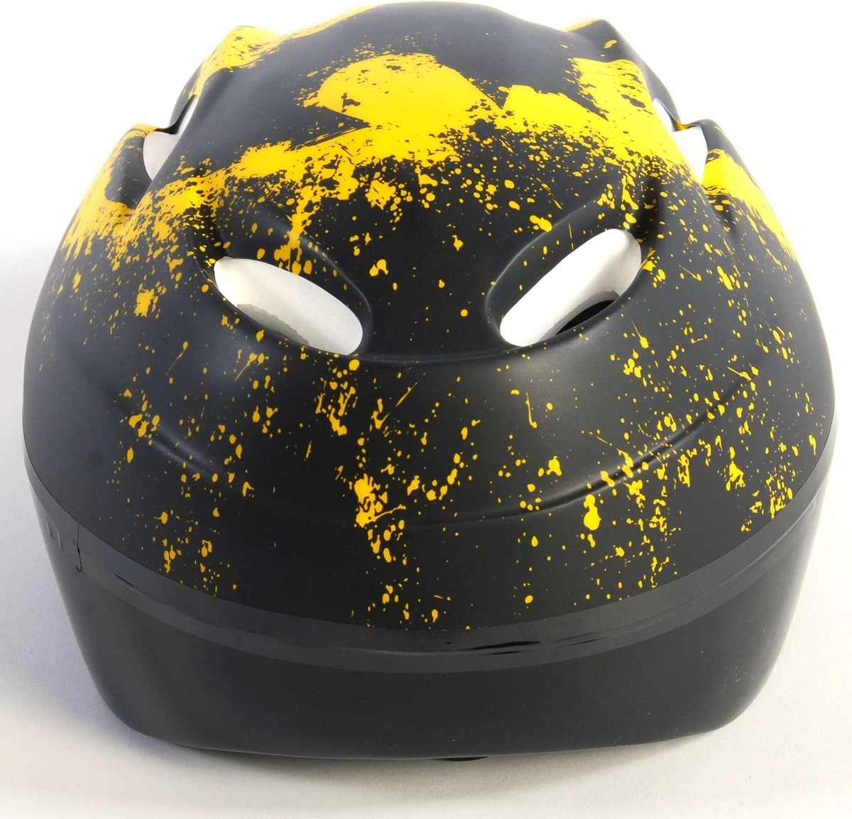 Volare Kinderfietsen beschikt over een grote collectie licentie helmen. Een daarvan is deze prachtige Batman fietshelm. De mooie zwart met gele kleur en het Batman logo geven de helm een perfecte uitstraling. Met de draaiknop is de hoofdomtrek van de helm verstelbaar van 52 tot 56 cm. Daarbij is de onderkant van de helm ook bedekt. De helm weegt slechts 200 gram. Dat maakt hem extra licht en dus makkelijk te dragen. De helm is naar de strengste eisen van het TÜV/GS goedgekeurd.