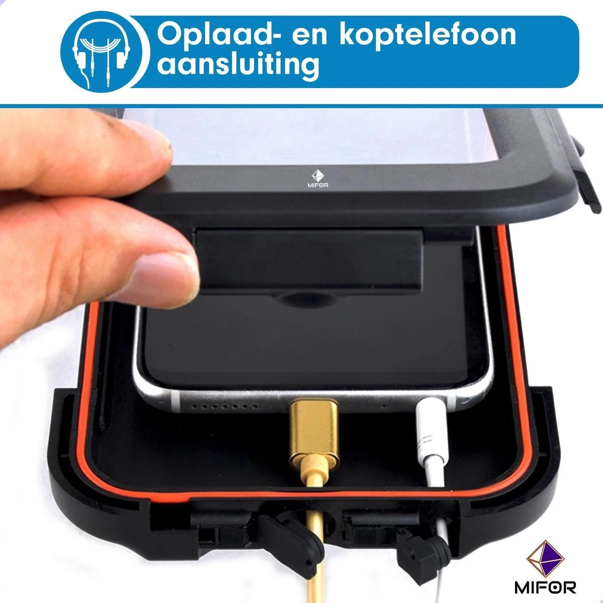 Dankzij de gevoelige en duidelijke schermbeschermingsfilm werken de camera’s aan de voor- en achterzijde goed (de home-knop touch-ID is niet beschikbaar). De aansluitingen kunnen via de openingen aan de onderzijde naar buiten worden geleid. Afhankelijk van uw wensen kunt u tijdens het rijden een headset via een kabel op uw mobiele telefoon aansluiten of uw mobiele telefoon opladen via een oplaadkabel