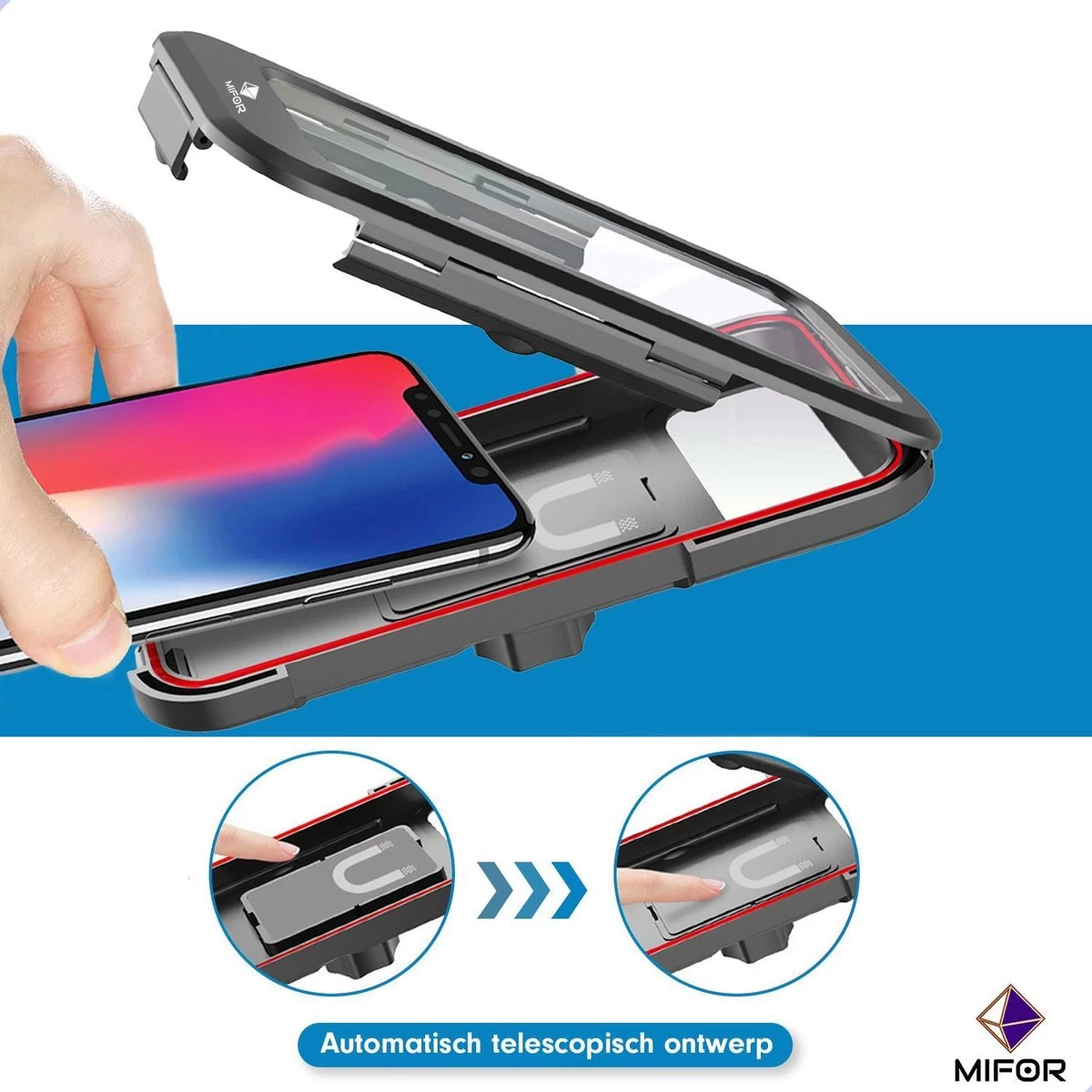 Perfect aangepaste kijkhoek: dankzij het draaibare scharnier kunt u uw telefoon 360 ° in elke richting draaien. De hoogte van de MIFOR telefoonhouder is in hoogte verstelbaar met de 2 telescooparmen