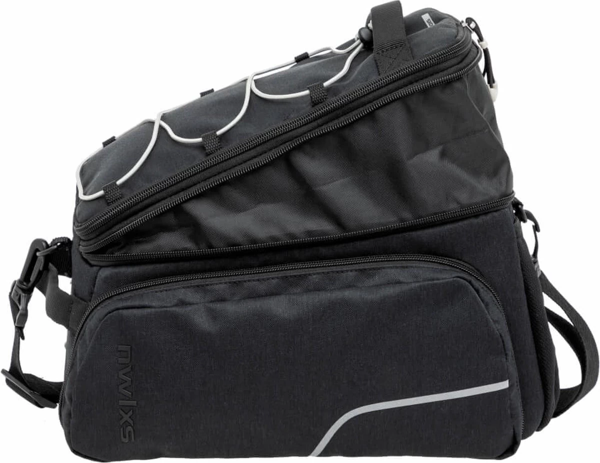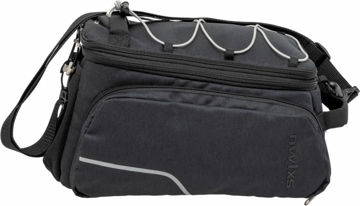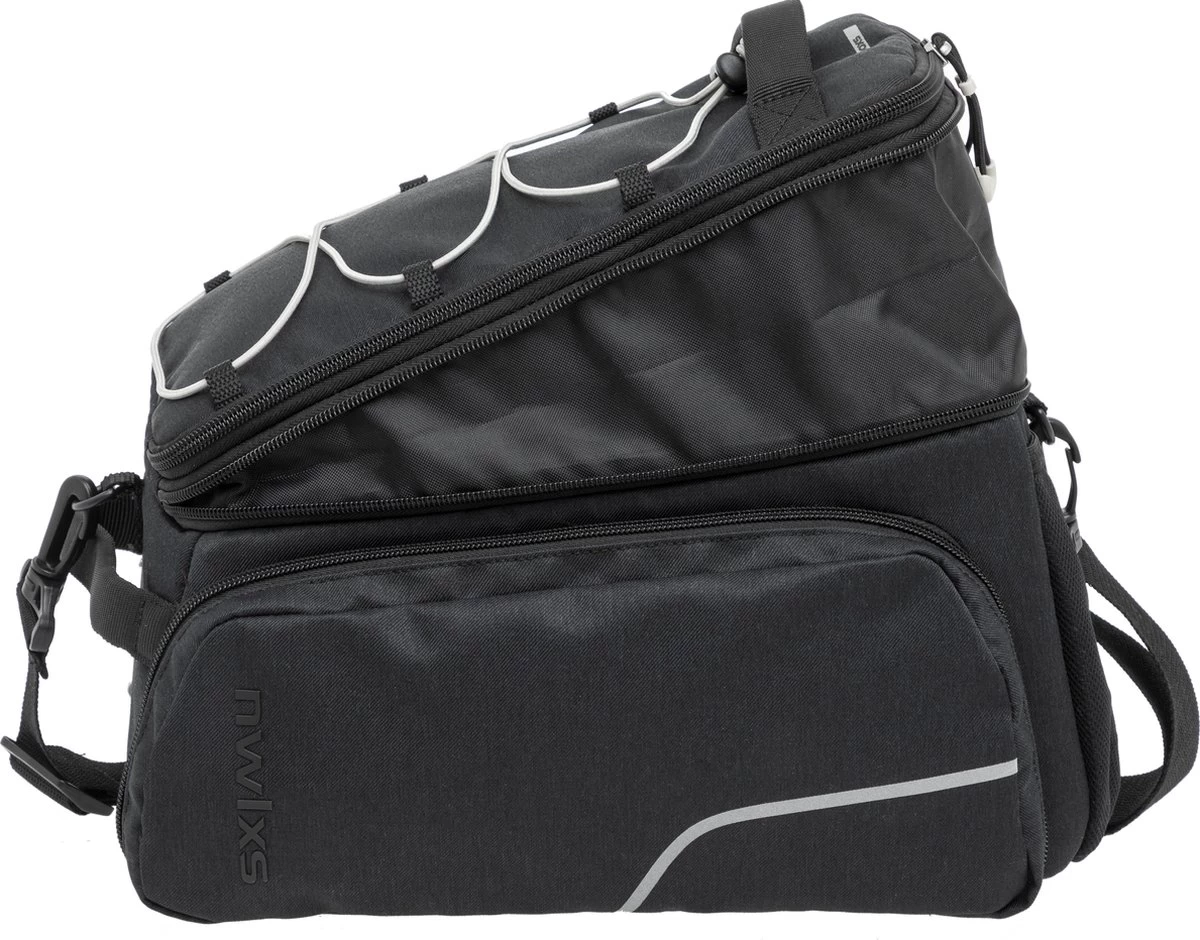 De Sports Trunk fietstas met MIK is verkrijgbaar in zwart met grijze accenten.