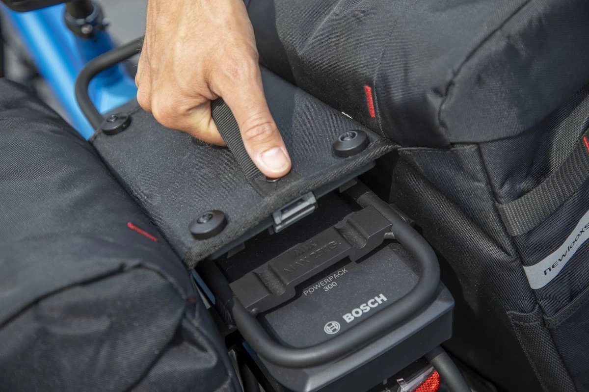 Het voordeel van het MIK bevestigingssysteem is dat de tas altijd goed bevestigd is op de bagagedrager. Daardoor blijft de tas goed zitten en hangt deze altijd mooi recht. Je kunt de fietstas extra vastzetten aan de zijkant van de bagagedrager met een klittenband riempje.