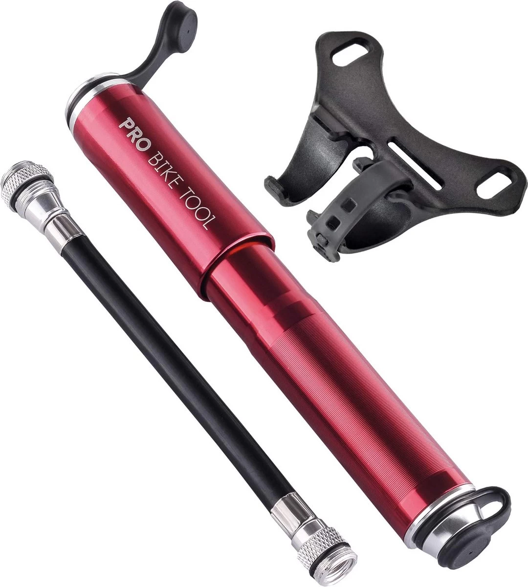PRO BIKE TOOL Mini Luchtpomp Fiets, Fietspomp Voor Alle Ventielen (Presta & Schrader), Hoge Druk Tot 6,9 Bar / 100 PSI, Betrouwbare, Compacte & Lichtgewicht Framepomp, Pomp Voor Racefiets & Mountainbike.