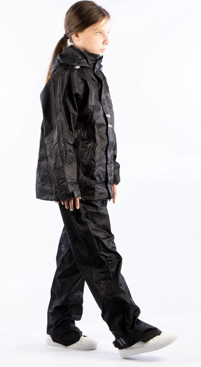De regenbroek is uitgerust met verstelbare broekspijpen door middel van klittenband zodat het eventueel met schoenen aangetrokken kan worden. In de taille van de broek is elastiek aangebracht voor extra draagcomfort en een mooie aansluiting op het lichaam. Dankzij de reflecterende accenten kunnen kinderen in dit regenpak bovendien veilig op pad, ook in het donker.