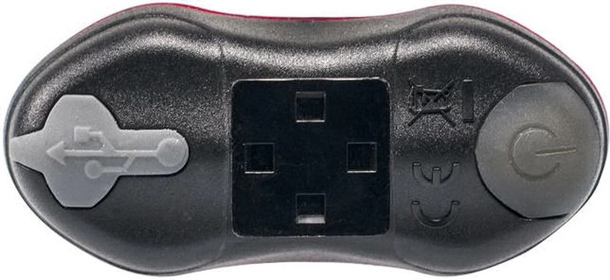 De Simson USB-koplamp Eyes is een compacte rode led-lamp met een zwarte behuizing. De universele rubberen bevestigingsband kan zowel horizontaal als verticaal gemonteerd worden. De fietslamp heeft een maximale brandtijd van ca. 7,5 uur en een handige batterij-indicator, zodat de batterij binnen 2,5 uur opgeladen kan worden via de USB-poort van de computer.