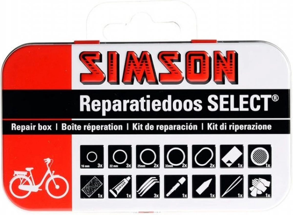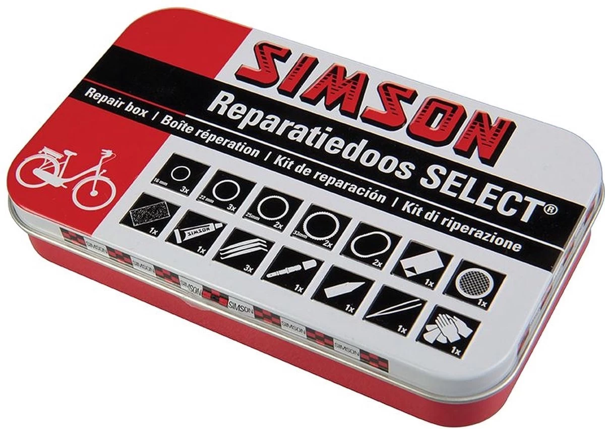 De nieuwe Simson reparatiedoos Select is de ultieme reparatiedoos voor onderweg. Deze Simson reparatiedoos bevat vele extra’s.