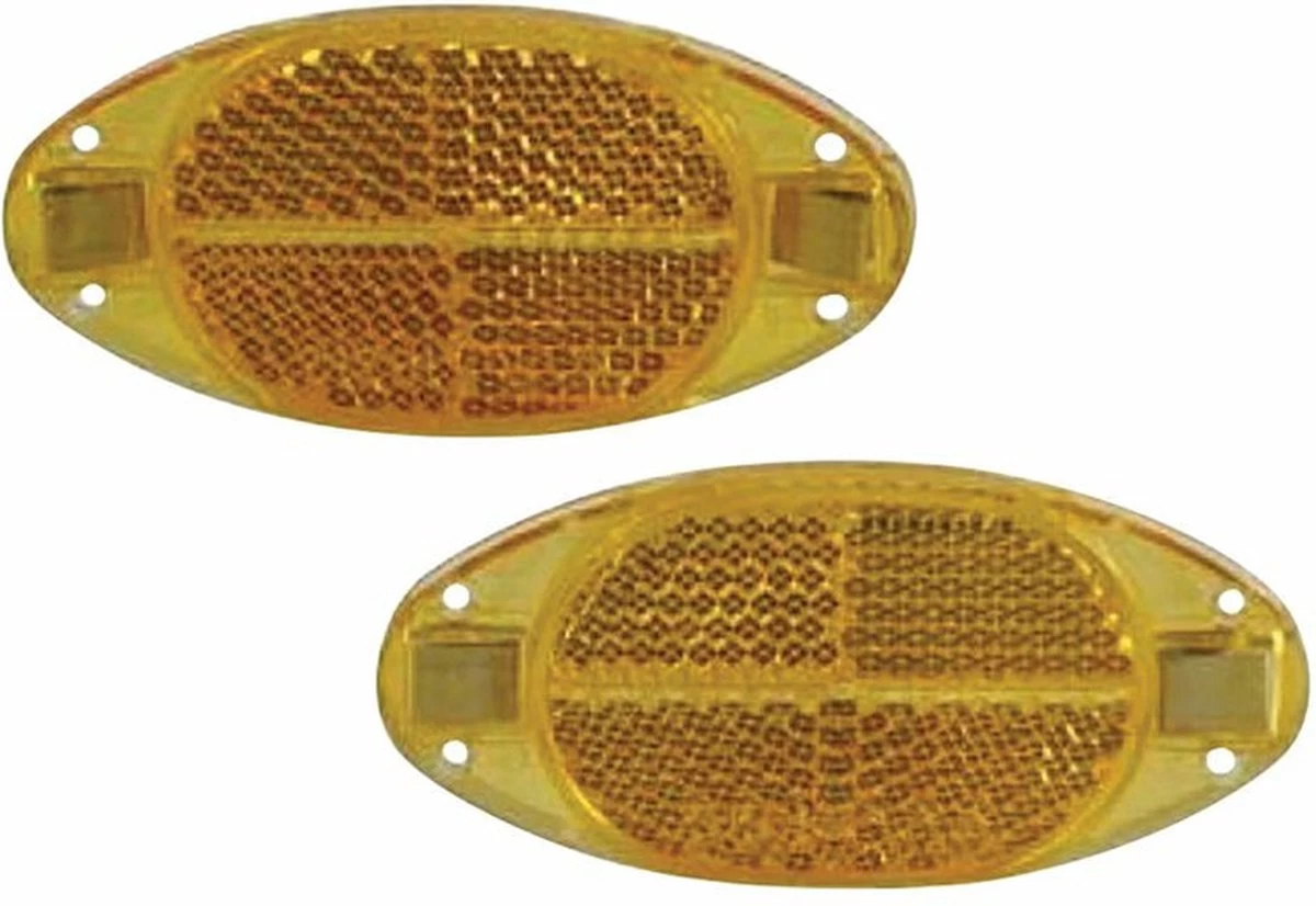 Spaakreflectoren/fietsreflectoren oranje set 2x stuks. Deze kunststof reflectoren zijn eenvoudig met het metalen kliksysteem tussen de spaken van de fiets te klikken. Formaat per stuk: 7,9 x 3,8 cm. Veiligheid/zichtbaarheid in het verkeer met deze fietsspaken reflectors.