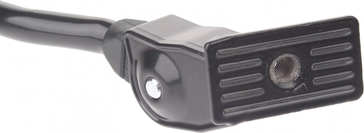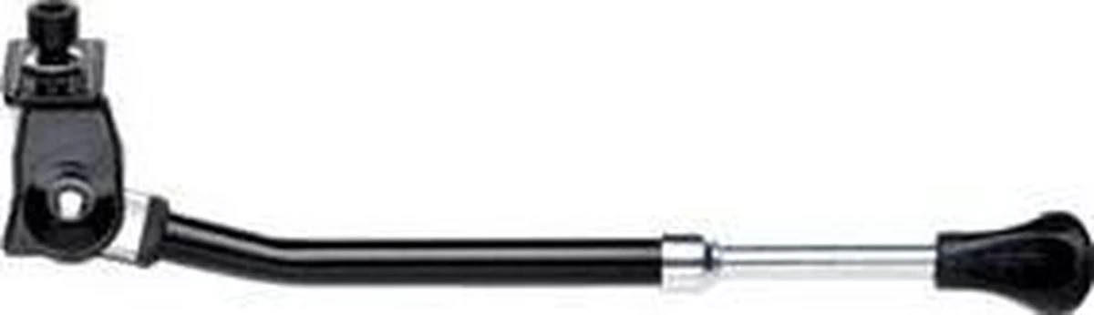 Maat: 24-26″ Kleur: zwart Materiaal: staal Lengte arm (vanaf hart draaipunt tot onderkant): 26 cm Dikte: 14 mm Type: enkel Verstelbare standaard Afmeting montageplaat: 29 x 55,4 mm Gewicht: 175 gram Inclusief bevestigingsbout en revet Gemakkelijke bevestiging achter de trapas Geschikt voor kinderfiets Hoge stabiliteit Extra sterke standaard