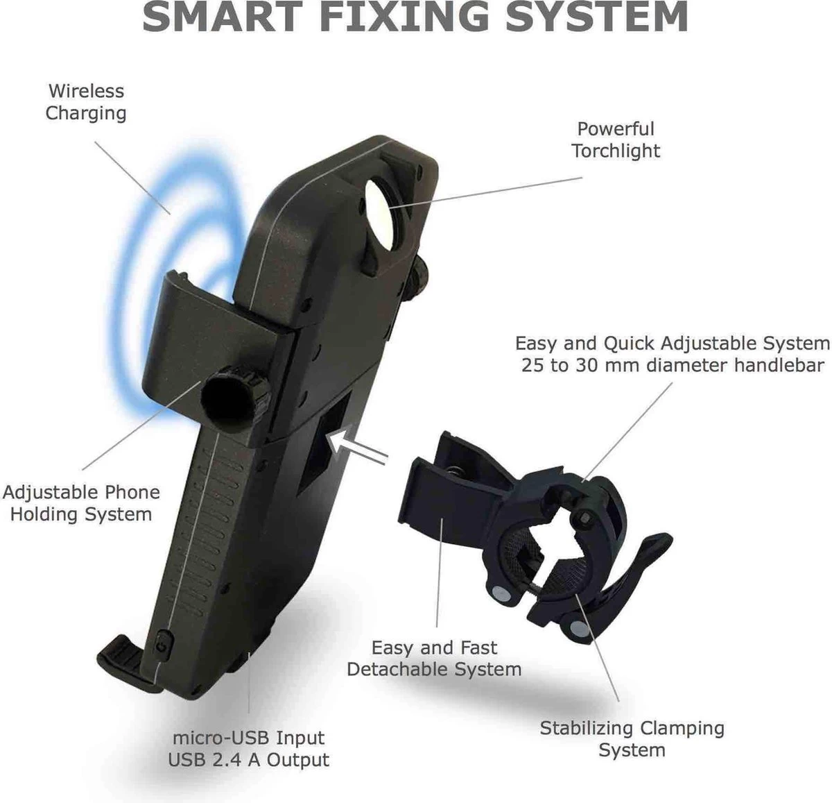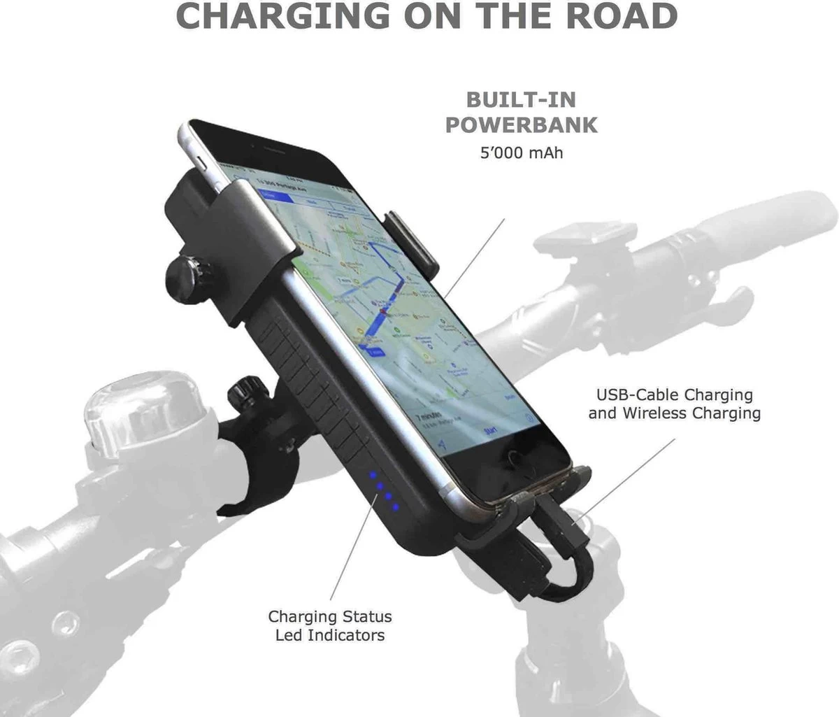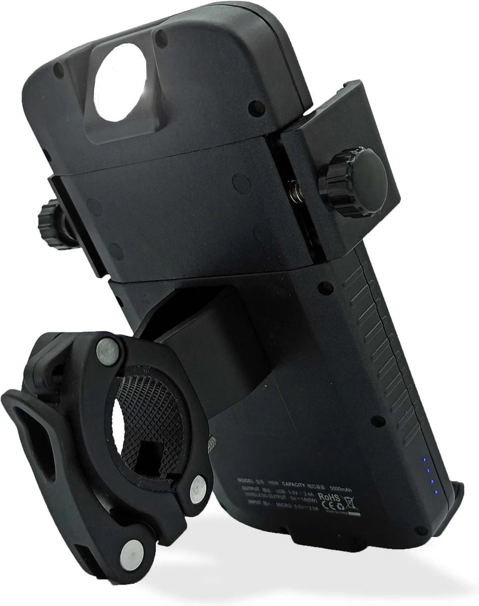 [OPLADEN TIJDENS HET FIETSEN] – Deze telefoonhouder heeft een ingebouwde 5’000mAh batterij waarmee u uw smartphone kunt opladen via inductie of met een standaard USB-kabel, terwijl u rijdt! Ideaal om de GPS langer te gebruiken! Verleng uw boodschappen, wandelingen, leveringen met onze externe batterijhouder.