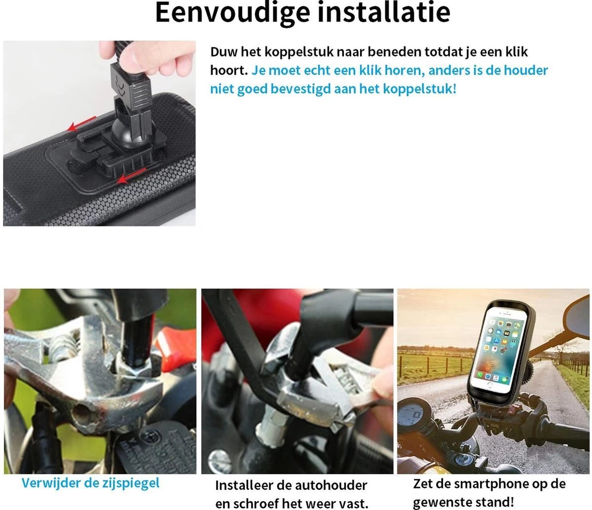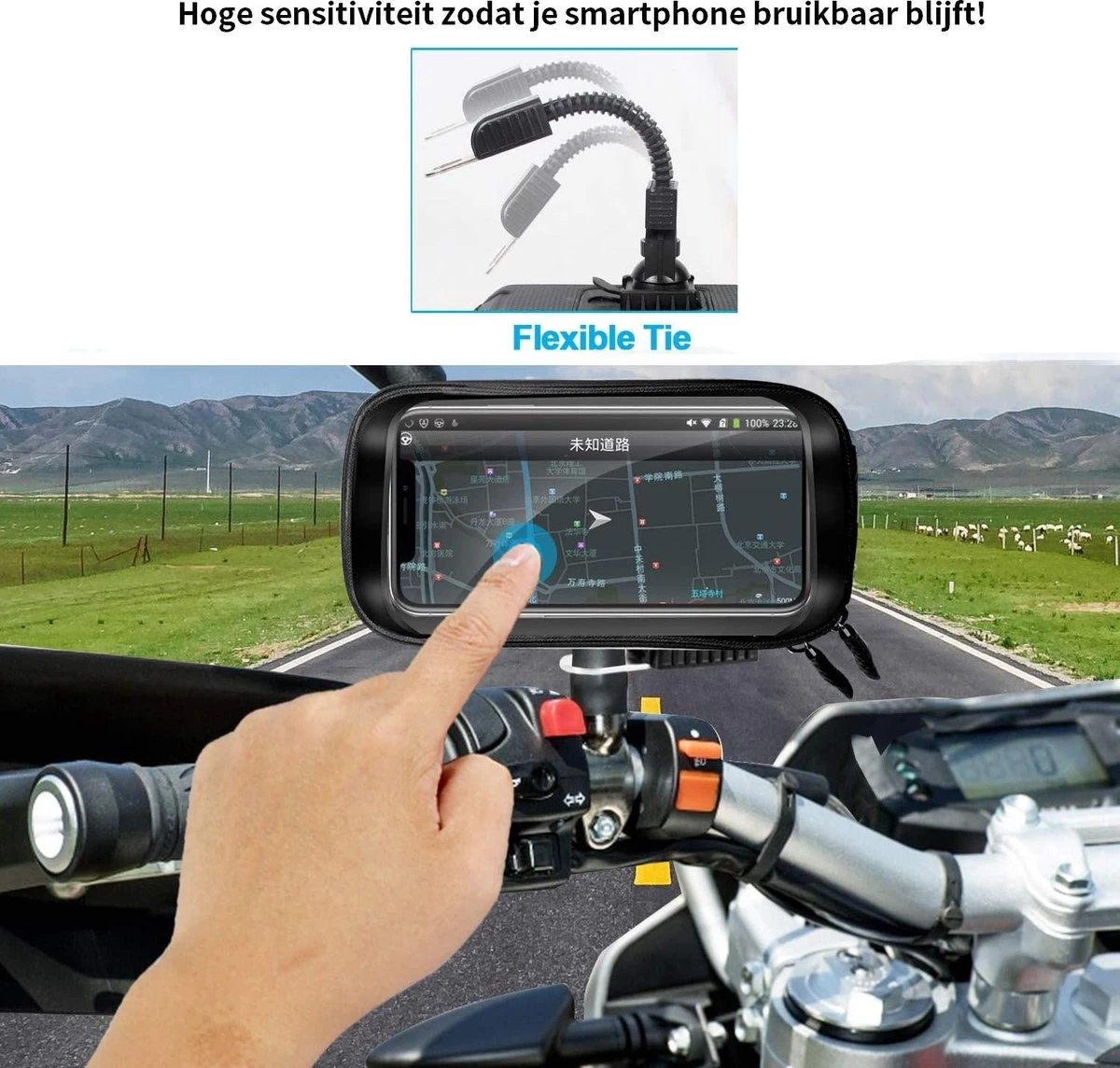 Bij een houder dat bevestigd wordt aan een stuur is het belangrijk dat de houder veilig vast zit. Met deze houder bent je daarvan verzekerd. Jouw toestel wordt vastgezet in een anti-schok tas, de hoeken zijn gevuld met rubber materiaal. Dit materiaal vangt de stoten op.